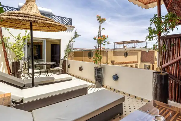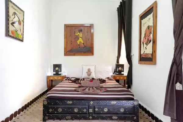 Le riad s’articule autour d’un patio paisible, véritable havre de paix loin de l’agitation extérieure. Les 7 chambres, joliment décorées dans un esprit afro-design, offrent confort et intimité. Chaque chambre est équipée de la climatisation réversible, du Wi-Fi haut débit et d’une salle de bain privative.