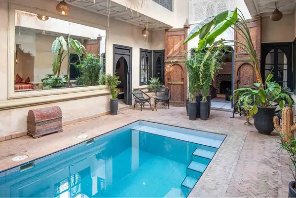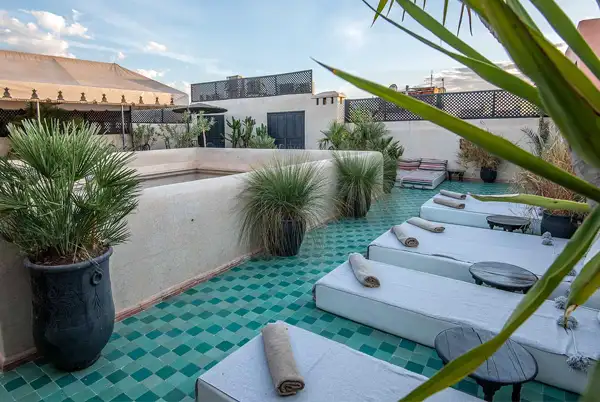 Laissez-vous séduire par le patio verdoyant, véritable oasis de fraîcheur en plein cœur de la Médina. La piscine du riad vous invite à la détente et à la relaxation après vos journées de découvertes. Sur le toit-terrasse ensoleillé, profitez d’un moment de calme pour vous reposer et admirer les toits de la Médina.