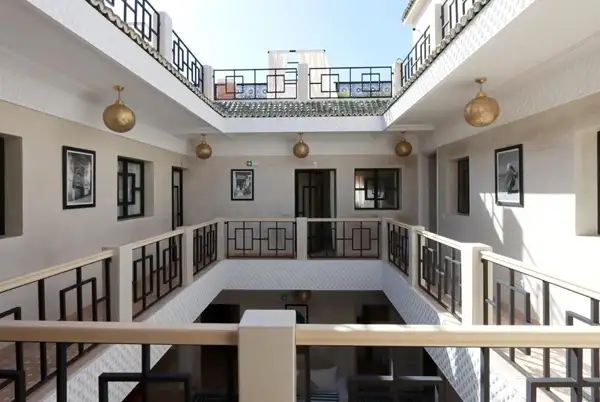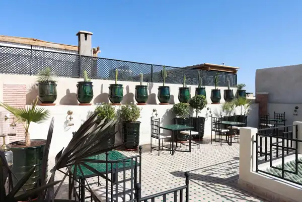 Le Riad Valentine dispose de 7 chambres, toutes aménagées avec des fenêtres insonorisées et équipées de la climatisation, assurant ainsi un séjour calme et agréable en toutes saisons. Chaque salle de bains est dotée d’une douche, d’un WC séparé, ainsi que de peignoirs et bonnets de douche, pour un confort optimal.