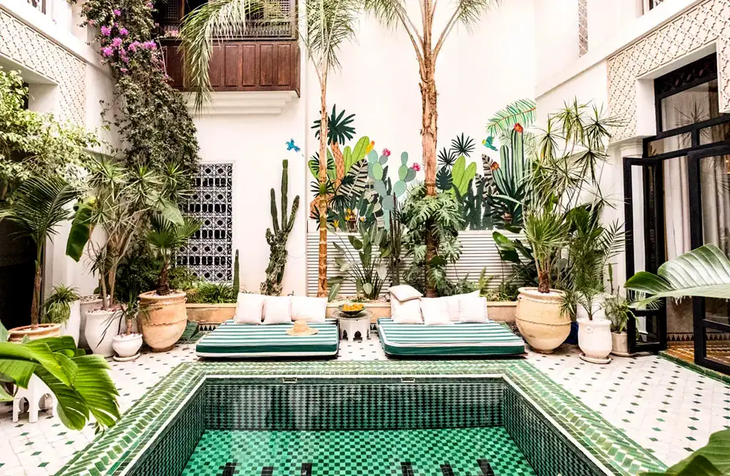 Pour allier immersion culturelle et détente, certains riads de la médina combinent luxe, spa et piscine en rooftop.